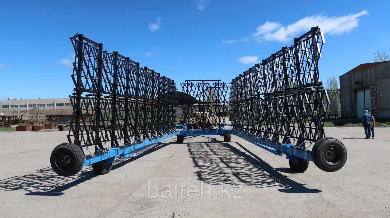 Конструкция бороны предусматривает, что она будет использоваться на несущей системе, перевод которой в транспортное положение осуществляется поворачиванием несущего бруса на 90 градусов по направлению движения.